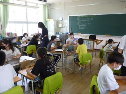 タブレットを使って自分の考えを書く活動をしました。
