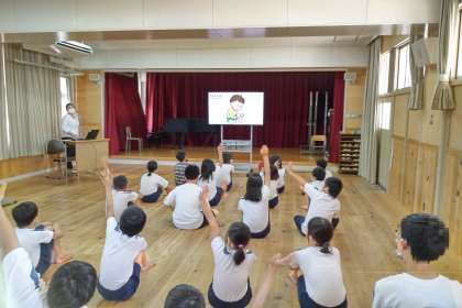 また、保健の先生に「けがをしたらどうすればよいか」、「熱中症」についてお話しいただきました。これから、運動会の練習もはじまります。体には気を付けて日々過ごしてほしいと思います。