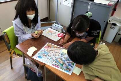 イラストを見て,けがや事故が起こりそうな場所を探して発表しました。