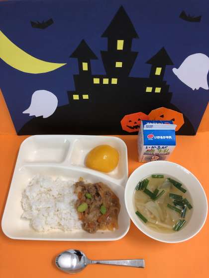 ピリ辛丼は、豚肉を主材に、たまねぎ、にんじん、青みにむきえだまめを使用し、砂糖、こしょう、こいくちしょうゆ、赤みそで味つけし、トウバンジャンで辛みをつけています。でん粉でとろみをつけ、ご飯にからむようにしています。