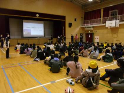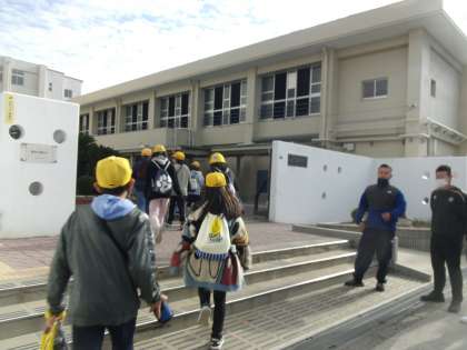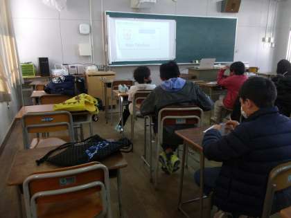 新北島中学校での授業体験会では、国語、社会、数学、理科、英語に分かれて、中学校の先生の授業を受けました。小学校に戻ってきて、それぞれが体験してきたことを報告し合いました。中学校の授業に興味を持てたようです。