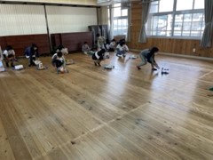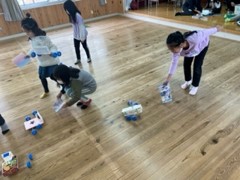 生活科で作った「ヨットカー」を木育ルームで走らせました。