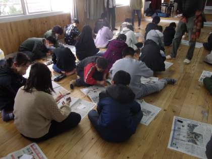 5・6年生が「平林会」という木材関係の仕事をされている方々から、森林について教えていただきました。木を切ることは、元気な森林を育てるために必要なことで、切った木も上手に利用していくことが大切だと学びました。後半は、桜の木の廃材でお箸作りをしました。紙やすりをつかって好きな太さに整えて、最後にくるみの油を使ってつやを出しました。手入れをすると何年も使えるそうです。