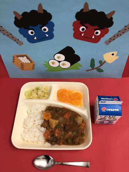 ハヤシライスは、子どもたちに大変人気のある献立のひとつです。牛肉を主材に、小麦粉と綿実油で作る手作りのブラウンルウ、デミグラスソースなどで煮こみ、仕上げます。給食室で花形に切り抜いたラッキーにんじんが入っています。