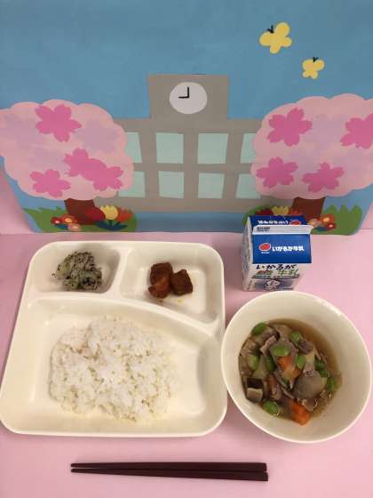 まぐろのオーロラ煮は、子どもたちに人気の献立です。しょうが汁、料理酒で下味をつけたまぐろにでん粉をまぶし、油であげ、ケチャップ、砂糖、赤みそで作ったタレをからめます。