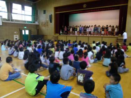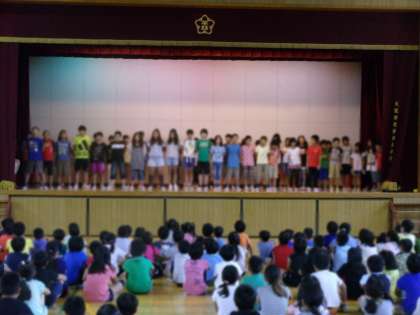 9月10日(木)児童集会が行われました。児童集会では、応援団になった4年、5年、6年のメンバーが壇上に上がり、自分自身で気持ちのこもった紹介をしていました。