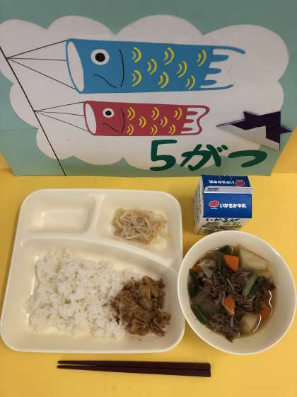 たけのこは、4月から5月にかけてが旬の野菜です。主に食べているのは、竹の若い茎の部分です。たけのこは成長が早く、すぐ『竹』になってしまうため、やわらかくおいしいこの時期に、収穫します。今日は、ごまかかいために使っています。