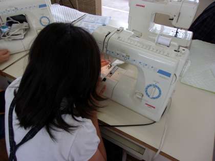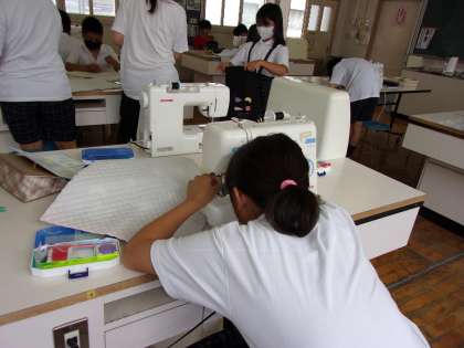上糸のかけ方や返し縫いの仕方など、5年生で学習したことを思い出しながら取り組みました。
