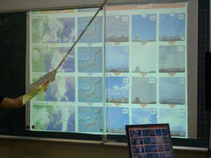 9月19日(木)の3時間目に理科の研究授業が行われました。校長先生や教頭先生はじめ各先生方が授業を見に来られ、5年生の子ども達は、いつもとは違う緊張感を持って授業を受けていました。「天気はどのように変化したのだろうか」というのが授業の主題でした。子ども達は、雲の動きを見て、「この場所は晴れ、この場所は雨」といろいろな意見を出して班で話し合っていました。授業を参観した先生方も子ども達の意見を真剣な眼差しで聞き入っていました。