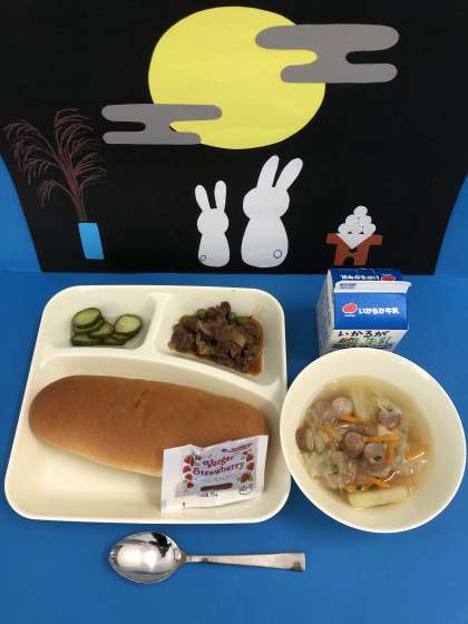 牛肉のデミグラスソース煮は、にんにくを香りよくいため、ワインで下味をつけた牛肉、たまねぎをいためて煮こみ、りんごピューレ、デミグラスソースなどで味つけしてまろやかさと旨みを出しています。彩りにグリーンピースを加えています。