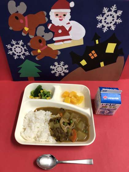 冬野菜のカレーライスは、子供たちに人気のカレーライスに、冬が旬のだいこん、れんこんなどを使用しています。