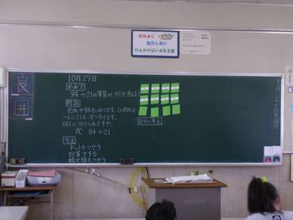10月27日(火)に算数の研究授業が行われました。「わり算のひっ算」の授業でした。ひっ算で計算をしたときに、どの位に商を書くのか悩んでいる児童もいました。子どもたちは、担任の先生方の説明を一生けんめい聞いていました。