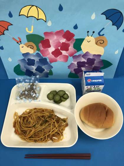 カレースパゲッティは、豚ひき肉を主材に、ベーコンで旨みを増し、カレールウの素などで味つけしたスパゲッティです。子どもたちに好評な献立です。