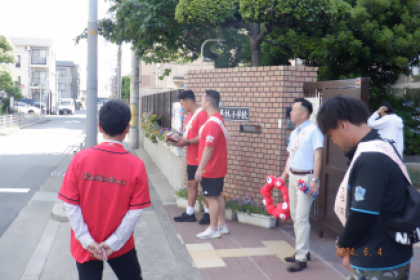あいさつ運動 住之江区長 レッドハリケーンズ