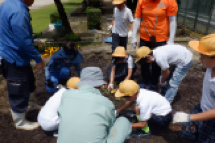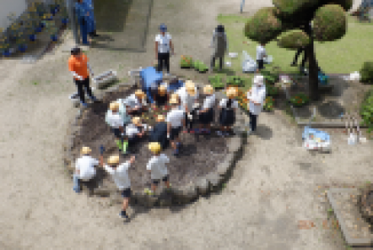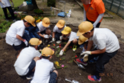 3年生の子ども達と一緒にマリーゴールドなどたくさんの花を植えていただきました。