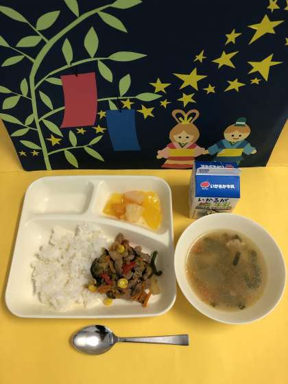 令和5年度学校給食献立コンクール優秀賞に選ばれた献立です。夏野菜飯は、焼き豚となす、赤ピーマンなどの夏野菜をごま油で香りよくいため、塩、こしょう、こいくちしょうゆ、中華スープの素で味つけした具をご飯の上にのせ混ぜて食べます。