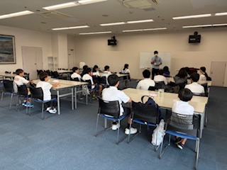 鳥羽水族館に到着して、いきもん!発見教室を受けています。