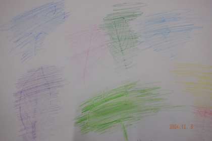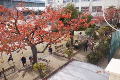 桜の木の葉っぱが色づいてきました。パソコンで写真を撮ったり、拾った葉っぱを紙にこすり出したりしました。