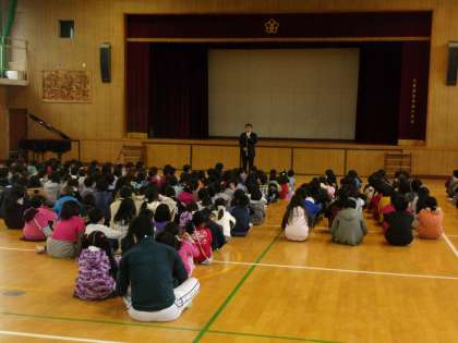 2学期の終業式が12月25日(金)に行われました。校長先生から4つのお話がありました。「2学期を振り返りましょう」「家のお手伝いをしましょう」「家の方といろいろなお話しをしましょう」「見守り隊の方へのお礼」の4点でした。そのあと、清水先生から冬休みをむかえるにあたっての注意がありました。子どもたちは校長先生・清水先生の話を真剣に聞いていました。