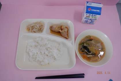 今日の給食は焼きとり みそ汁 もやしのゆずの香あえです。