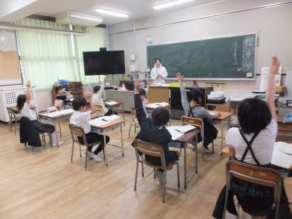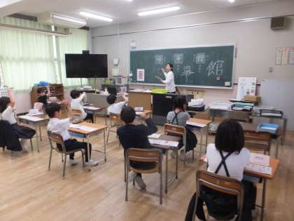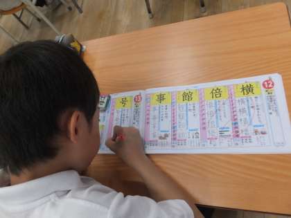 1時限目は「国語」で漢字の学習とすいせんのラッパの