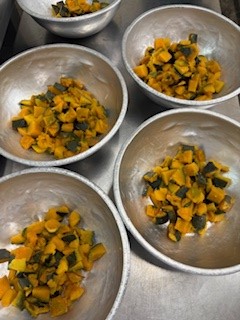 焼きかぼちゃは、冷凍のかぼちゃに塩で下味をつけ、焼き物機で焼きます。