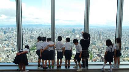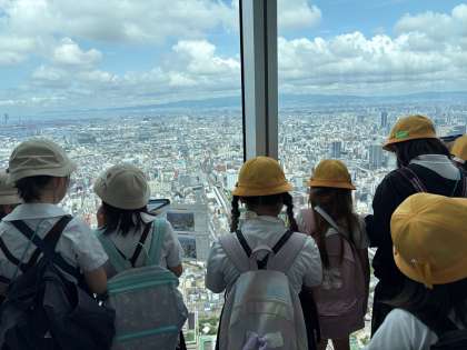 社会見学であべのハルカスに行きました。展望台から見える大阪市のまちの様子を確かめることができました。
