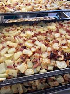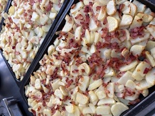 「ジャーマンポテト」は、塩、こしょう、綿実油で下味をつけたベーコンとじゃがいもを焼き物機で焼きます。