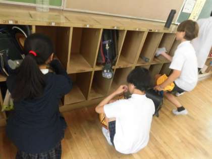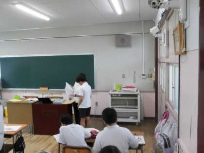 終業式後、子どもたちは、夏休みの課題を確認したり
