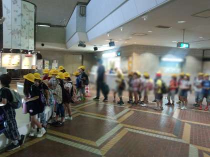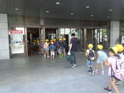 10月10日(木)に3年生が秋の遠足に、長居公園と自然史博物館に行きました。自然史博物館では、館内の展示物(恐竜の骨や化石)を真剣に見ていました。昼食は、長居公園で楽しんで食べました。