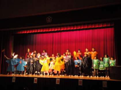 5年生は、学習発表会で劇「オズの魔法使い」を行いました。高学年になると、セリフや身振り手振りなどは抜群です。