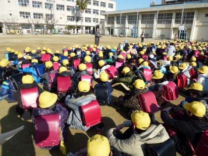 1月15日(水)に、地震を想定した避難訓練が行われました。子どもたちは、放送と担任の先生の指示に従いながら走ってグランドに逃げました。集合したあと、教頭先生から避難訓練の感想と普段から気をつけておかなければならないこと等のお話がありました。子どもたちは真剣に話を聞いていました。