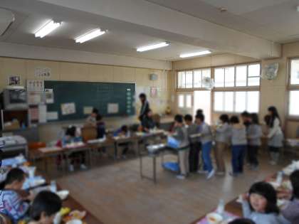 いつもと少し違った雰囲気の中、みんなでおいしく給食をいただくことができました。