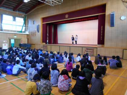 1月26日に全国学校給食週間(1月24日から30日)にちなんで、給食委員会の発表集会がありました。