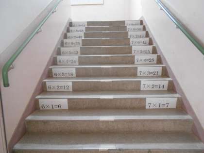 2月8日(水)に平林小学校の階段に九九が現れました。