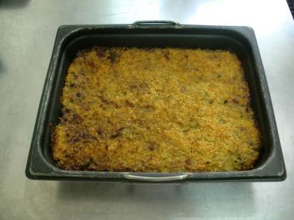 カレードリアは、鶏肉と具材と米を共に煮、カレールウの素で味つけしクリームを加えた後、ミニバットに入れ焼きます。暑い時期でも食べやすいようカレー味にしています。