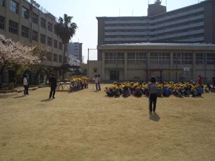4月9日(水)の朝、1年生と上級生との対面式が行われました。校長先生のお話と6年生のおねえさんから歓迎のことばがありました。1年生のお礼の言葉を天満先生が言ってました。