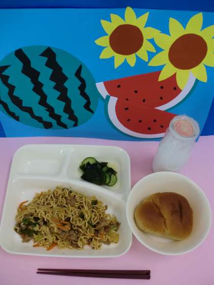 焼きそばは豚肉、いかを主材にしたソース味の子どもたちに人気のある、いためめんです。