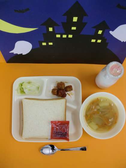 まぐろのオーロラ煮は、しょうが汁で下味をつけたまぐろにでんぷんをまぶして揚げ、ケチャップ、砂糖、赤みそで作ったタレをからませます。魚の臭みがなく人気のある献立の一つです。まぐろには、体をつくるもとになるたんぱく質が多く含まれています。