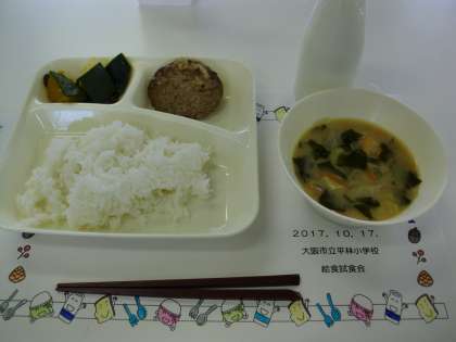 PTA給食試食会を開催しました。栄養教諭の方に来ていただき、大阪市の学校給食の歴史や食育についてお話いただきました。