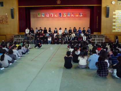 6年生からは合奏のプレゼントと在校生に手作りのぞうきんをいただきました。