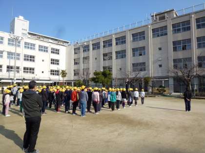 平林小学校では、火災や地震等の災害に備え、避難訓練を計画的に実施しています。津波発生時には、一次避難後に3階以上へ二次避難することになっています。