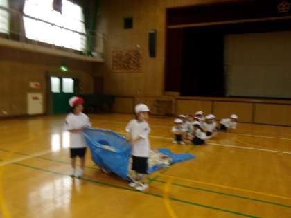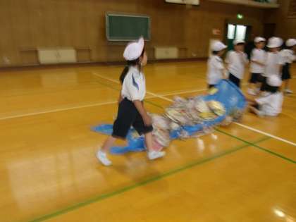 あいにく雨天のため講堂での実施となりましたが、子どもたちは大喜びでこいのぼりを泳がせました。