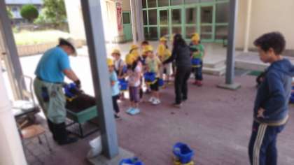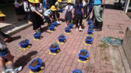 二年生が生活科でミニトマトとサツマイモを植えました。