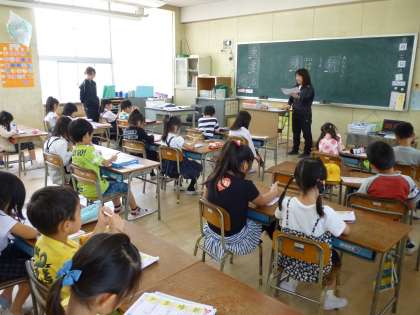 新しい漢字を覚えるときは、担任の先生が一画一画を模範しながら学習していきます。