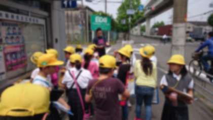 自分たちの住む町の様子をメモしたり、タブレットに記録したりしました。