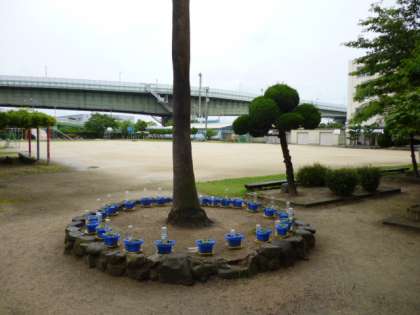 校庭の木々や芝生にとっては恵みの雨となっています。