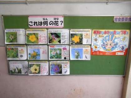 給食委員会が夏の野菜についてまとめた掲示板を作ってくれました。
