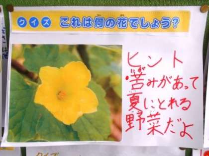 夏野菜の花はどんなものか当てるクイズがたくさんあります。