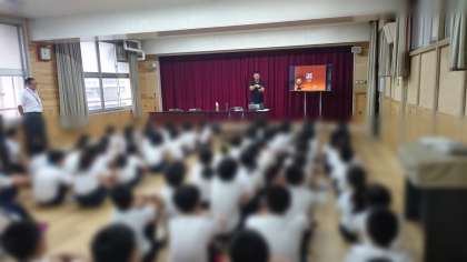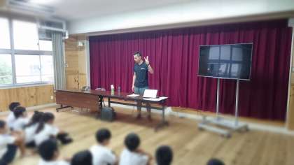 トップアスリートによる「夢授業」で、走り幅跳びにおいて世界陸上大会で活躍された、荒川大輔さんが平林小学校に来てくださいました。